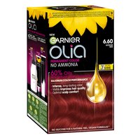 Garnier Olia drivs med kraften från 60 % oljor* för maximal färgprestation och ger en synlig förbättring på hårets kvalitet. Ger upp till 100 % gråhårstäckning och optimal komfort för din hårbotten. 98 % av kvinnorna hittade inga skador på håret**. *I färgkrämen. **Användartest, 262 kvinnor, användning av hela förpackningen.