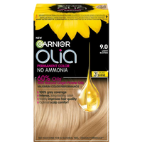 Garnier Olia drivs med kraften från 60 % oljor* för maximal färgprestation och ger en synlig förbättring på hårets kvalitet. Ger upp till 100 % gråhårstäckning och optimal komfort för din hårbotten. 98 % av kvinnorna hittade inga skador på håret**. *I färgkrämen. **Användartest, 262 kvinnor, användning av hela förpackningen.