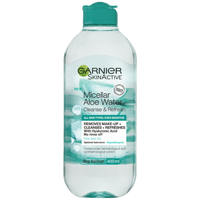 Garnier Micellar Aloe som rengör, avlägsnar orenheter och makeup samt lugnar huden. Passar för alla hudtyper, även känslig hud.